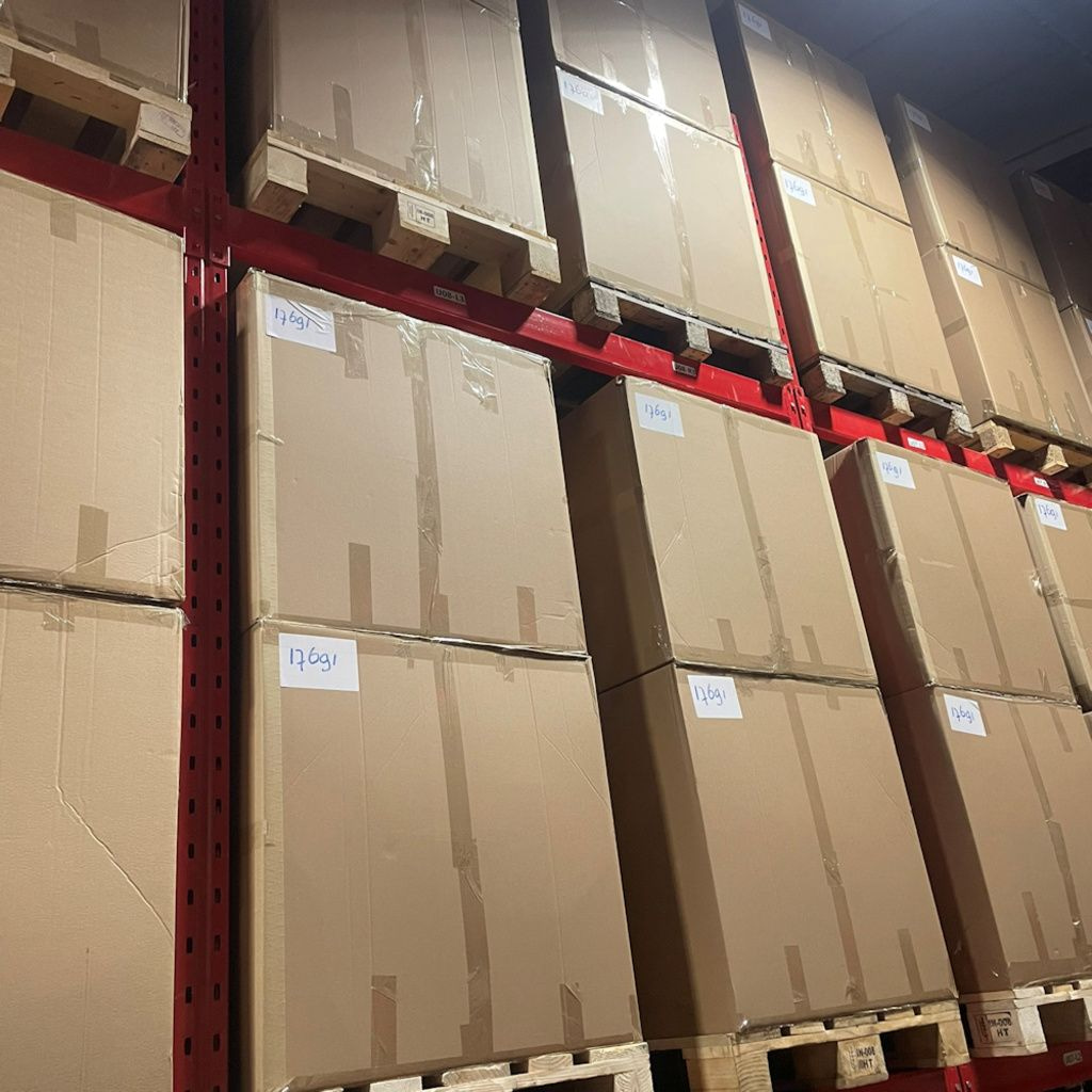 Alle disse varene er blandet i en pallekasse på: 120 x 80 x 80 cm.